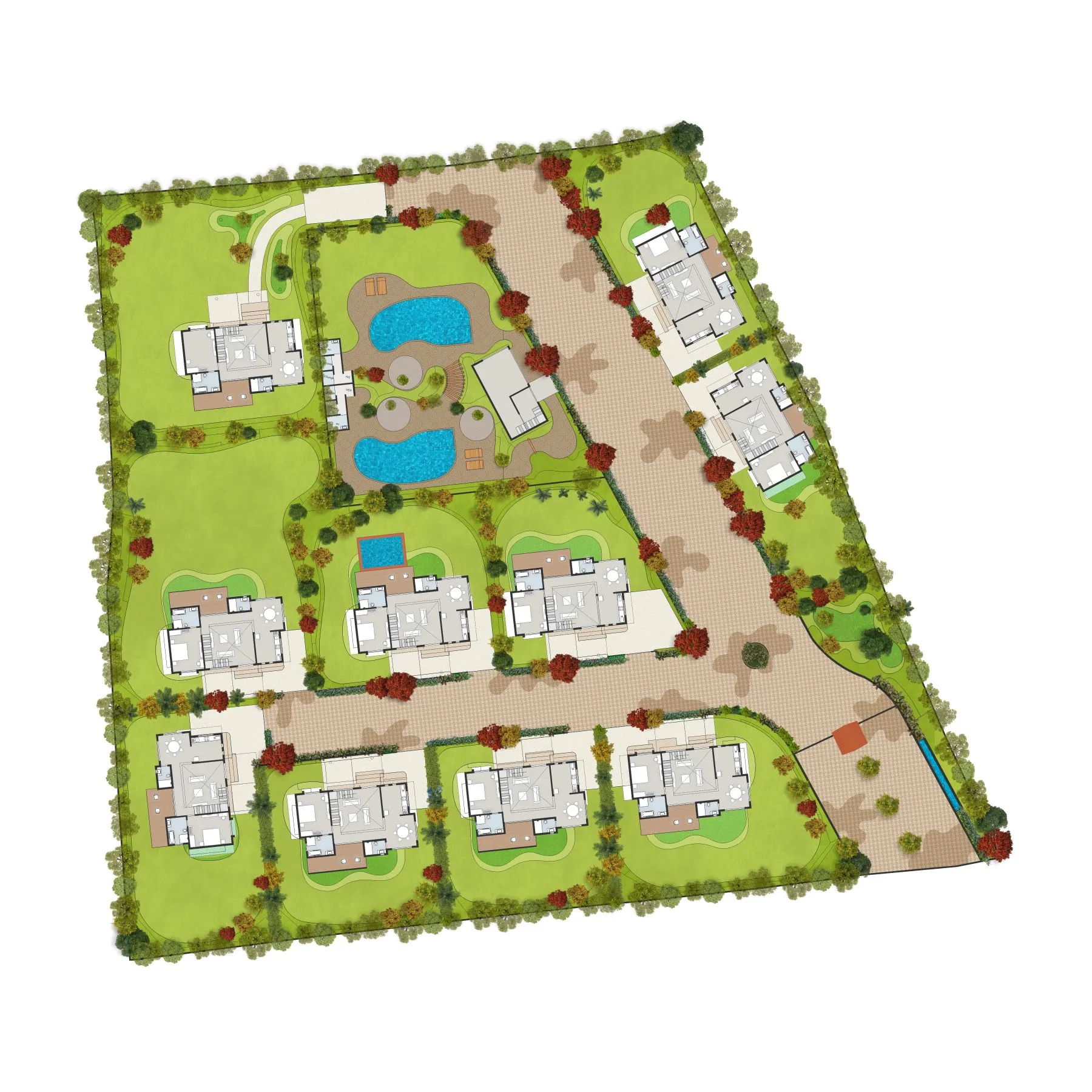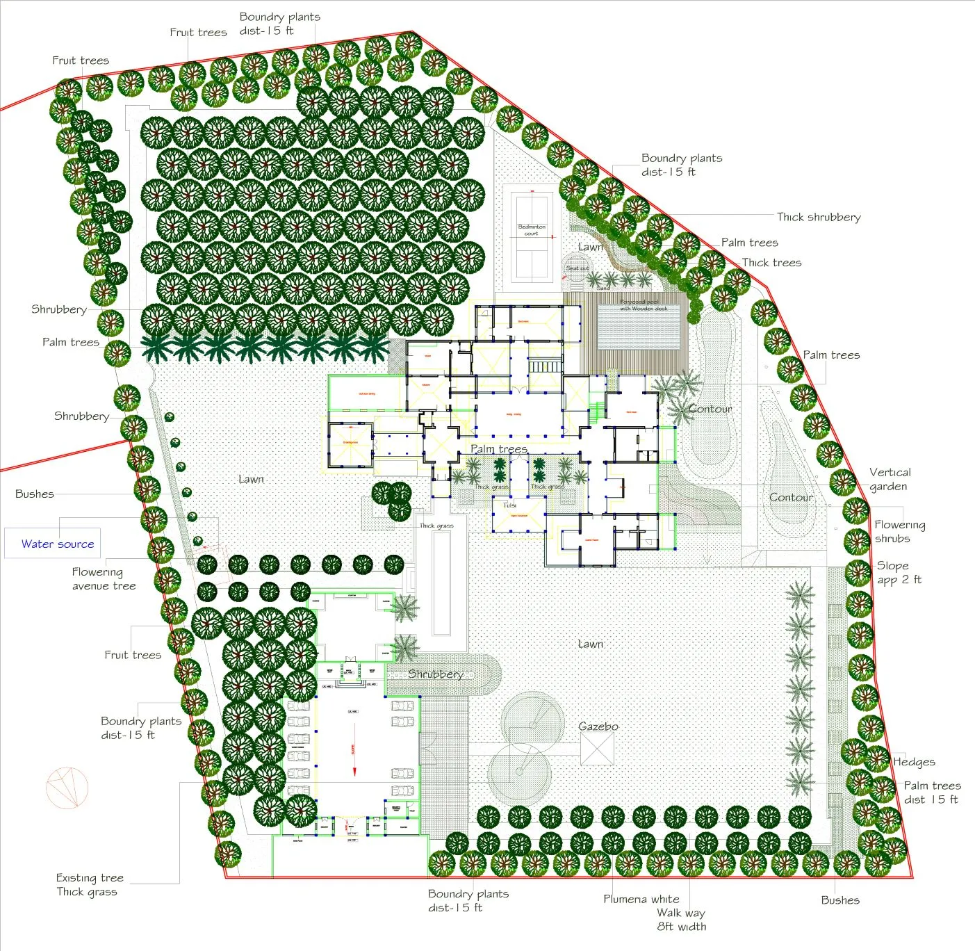 Contour is the USP of this project, with minimal of the soil filling, we design the land with different levels of contours. This project is in between urban place though from within it looks like it is in between the nature